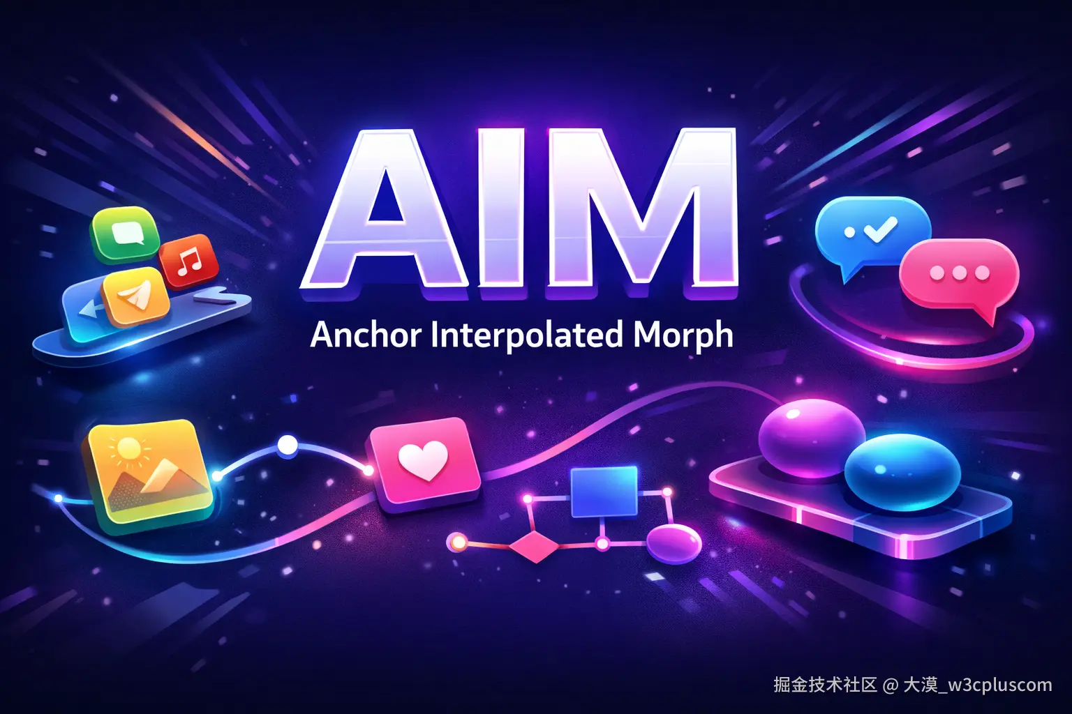 AIM (Anchor Interpolated Morph,锚点插值变形)是一种前沿的 Web 动画技术,它的核心理念是将元素视为“锚点”,通过位置、尺寸和形状的插值计算,实现元素之前的平滑过渡动画。通俗来说,AIM 能让一个元素看起来像是从另一个元素位置“生长”出来,或者在关闭时平滑地返回原来的位置。与传统的 过渡或动画 不同,AIM 不仅关注单一属性的变化(例如位置或透明度),而是综合考虑元素的空间信息和布局锚点,在不同状态之间自动生成连贯的动画路径,使界面变化更加自然流畅,同时保留用户的空间感知,让用户清楚地理解元素之间的关系。从动画效果来看,AIM 与早期的 F.L.I.P(First, Last, Invert 和 Play)技术非常相似。