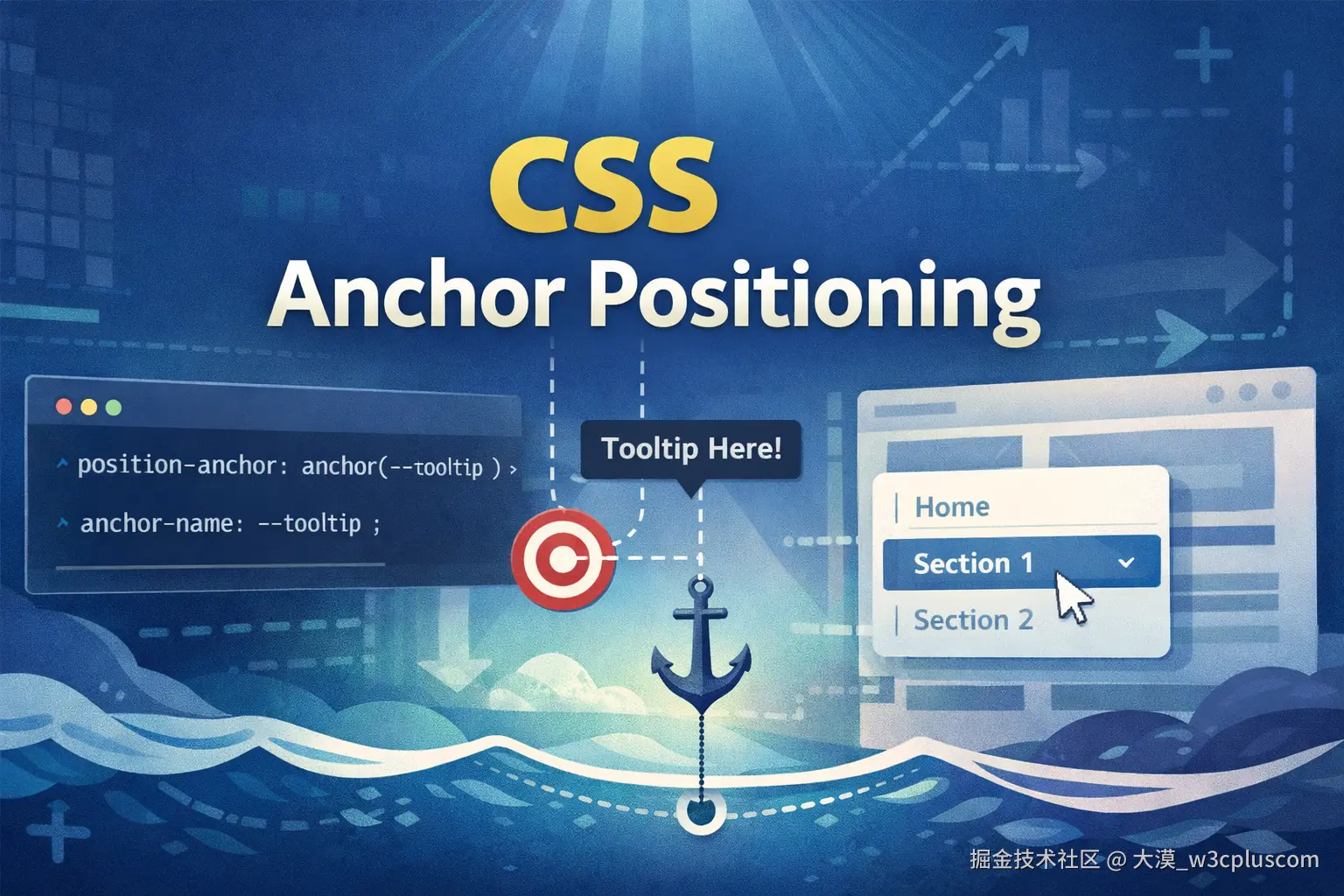 在很长的一段时间里,从提示框(Tooltip)、下拉菜单(DropdownMenu)、弹窗(Popover)到各种浮动菜单,这类 Web UI 一直依赖 JavaScript 来“贴住”触发元素。你要么使用第三方 JavaScript 库,要么自己写一套基于 getBoundingClientRect 的计算逻辑,在滚动、缩放和布局变化时不断更新位置。归根结底,浏览器本身一直缺少一个原生能力——让一个元素跟随另一个元素定位。