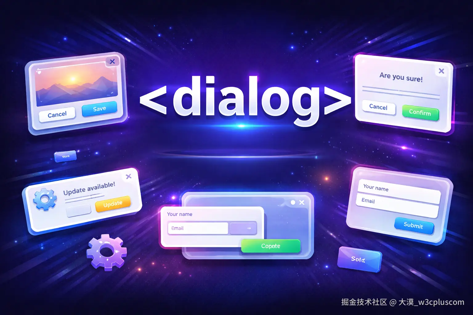 如果说 Popover API 适用于非阻塞的浮层——用户点击外部即可关闭,那么 HTML 的 <dialog> 则用于真正的模态体验(模态框):在关闭之前,必须完全占据用户注意力的那类交互。