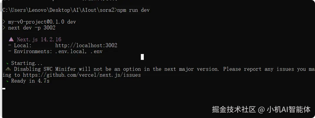 当然,我这里因为当时 3000 端口在占用,所以这里改成了 3002,如果是第一次启动的话,默认会是 3000 端口。