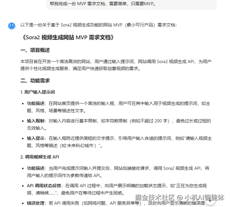 决策:将“自定义视频时长”标记为“V2 版本可选功能”,MVP 阶段不开发——避免因“小众需求”额外花费 1-2 天对接 API 参数(Sora 2 自定义时长需额外配置 time_range 参数),导致核心功能上线延迟。
