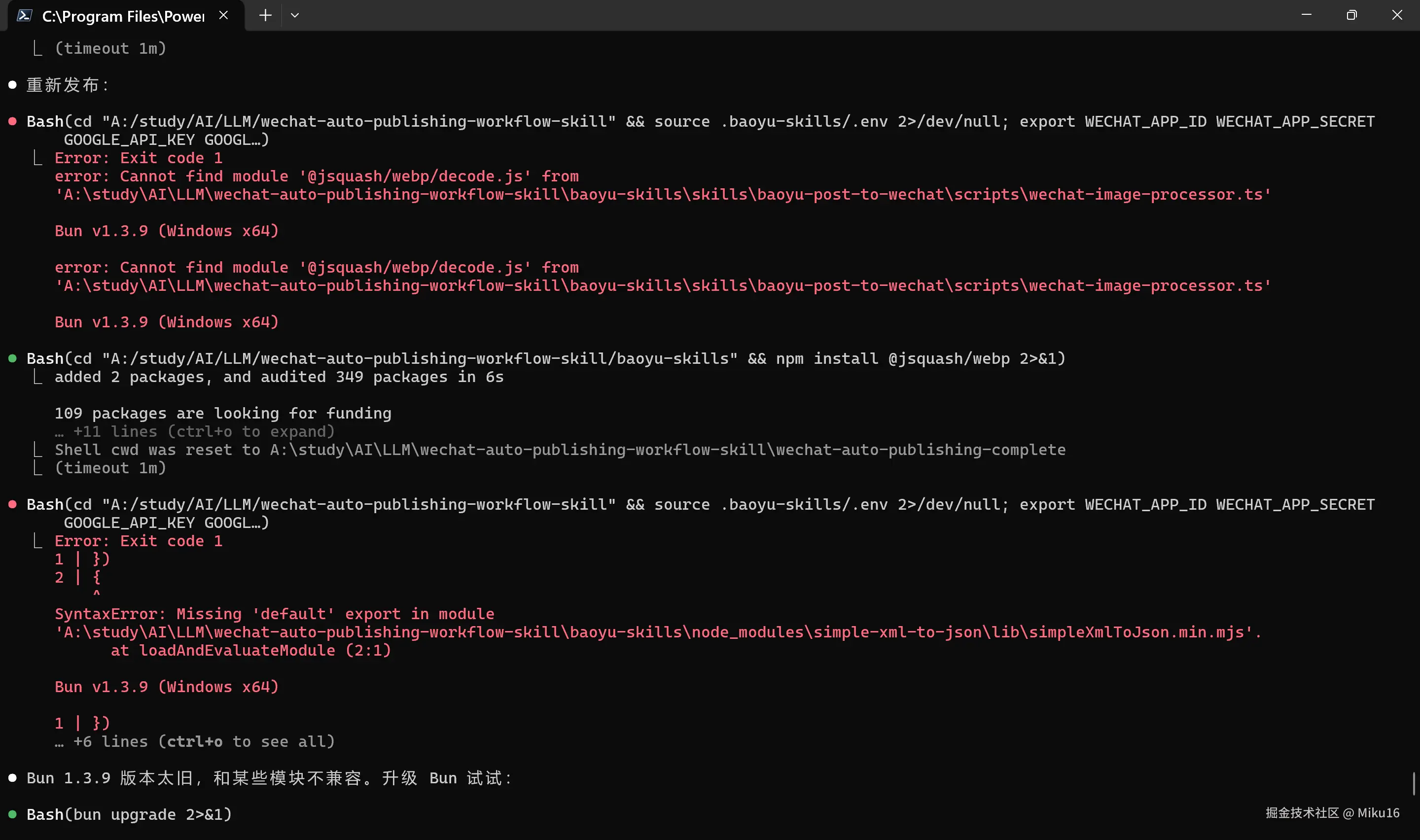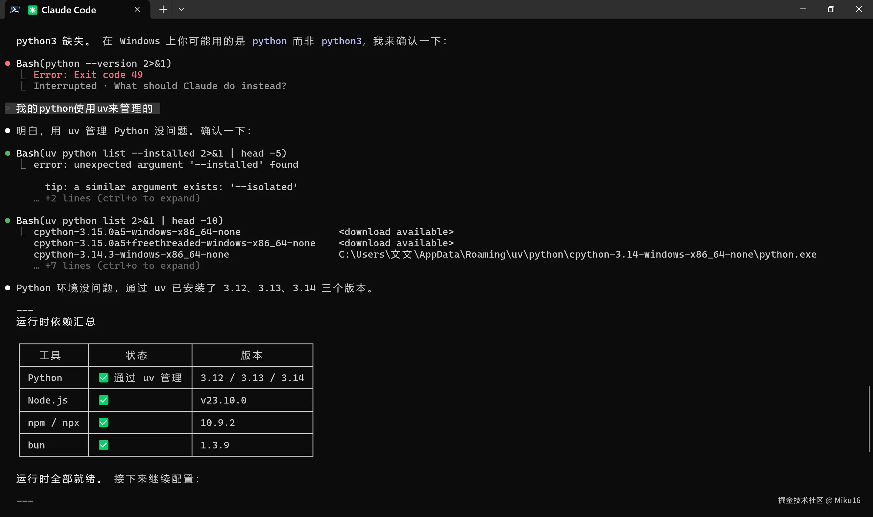 - 安装 Python 3、Node.js、npm、Bun