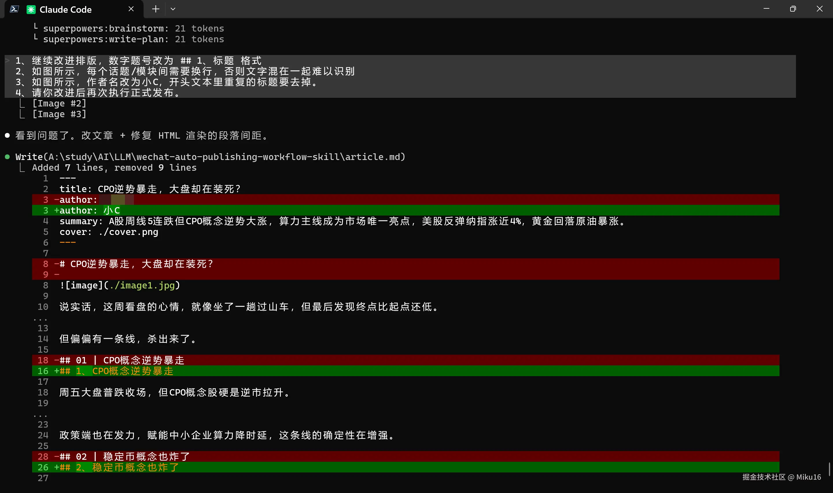 这个项目展示了一种全新的 AI 工作流思路:不是写一个自动化脚本,而是写一份让 AI Agent 能理解和执行的「行为手册」。 通过 Claude Code 的 Skill 机制,我们可以将复杂的多步骤工作流封装为一个可复现、可交接、可扩展的知识包。如果你也在做公众号,或者对 AI Agent 的 Skill 开发感兴趣,欢迎 Star、Fork、提 Issue,一起探索 AI 驱动内容生产的更多可能!