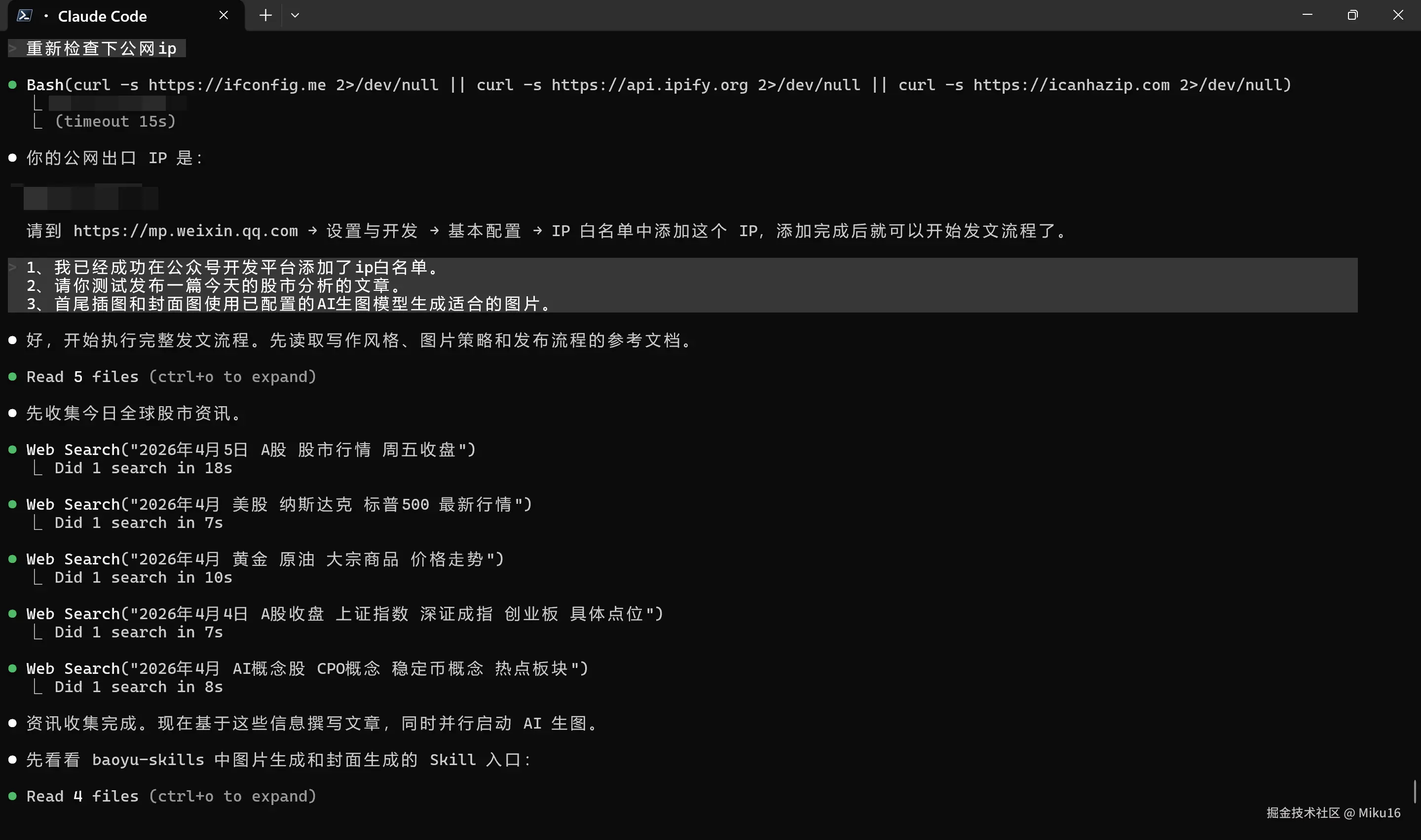 - 告诉 AI「帮我发一篇今天的公众号文章」