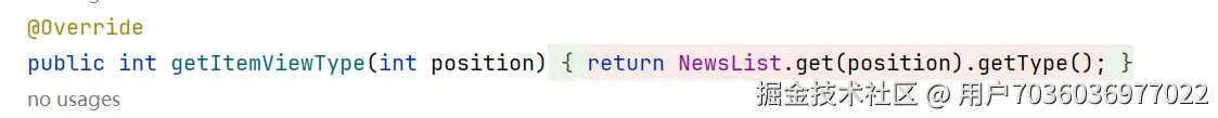 - 需要注意的是,type字段在这里至关重要,它直接决定了该新闻数据项最终使用哪种布局文件(list_item_one.xml、list_item_two.xml等)来呈现,是实现多视图类型的核心字段。此外,imgList字段采用List类型,是为了适配不同数量的图片需求,后续如果需要扩展多图新闻(如四图、五图),只需修改type字段和布局文件即可,无需修改数据模型的结构。