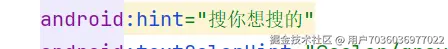 ① android:hint:设置输入提示文字“搜你想搜的”,引导用户输入搜索关键词,提示文字默认显示为浅灰色,用户输入后自动隐藏;