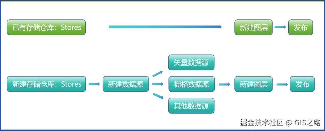 我根据是否具有存储仓库,将图层发布路径划分为以下两条线。
