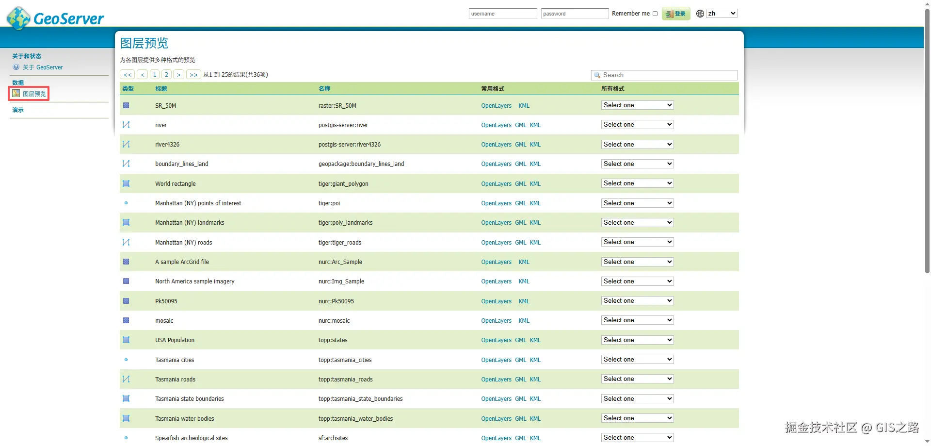 GeoServer 默认账号信息
