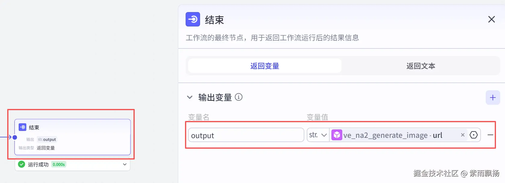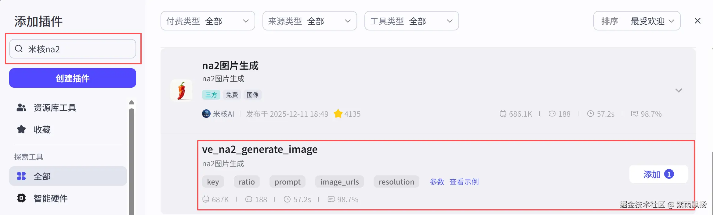这个节点用来根据提示词绘制场景英语单词卡片,使用到了扣子三方的米核插件【na2图片生成】的【ve_na2_generate_image】工具。