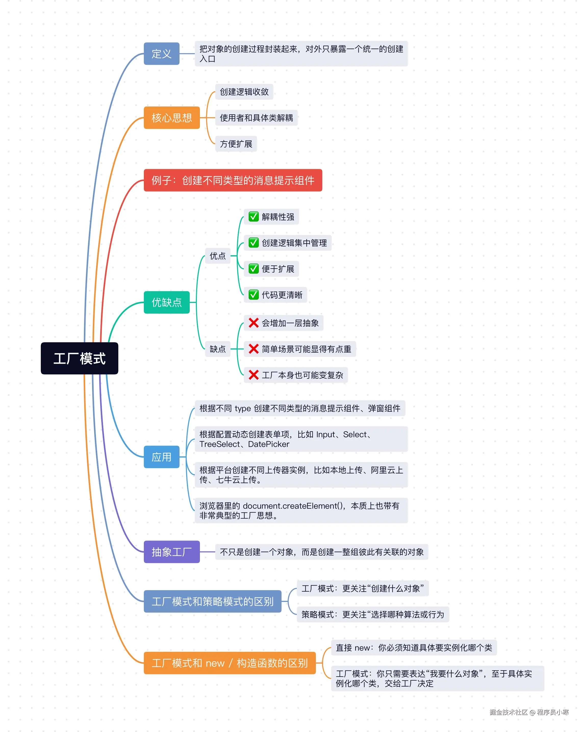 对于前端开发来说,工厂模式非常实用,像消息组件创建、表单项创建、上传器创建、请求实例创建这些场景里,都能看到它的影子。它本质上就是帮我们把“怎么创建对象”从“怎么使用对象”里拆开,这样代码会更清晰,后面扩展起来也更从容。