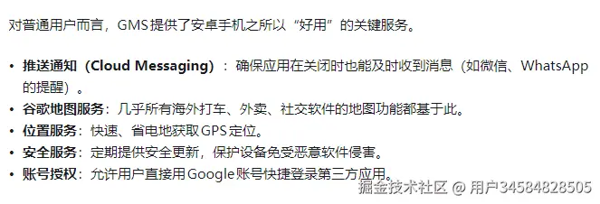 GMS是(海外)Android生态中非常核心的一部分,指谷歌提供的一系列应用、API和服务框架。它不同于开源的Android系统(AOSP),需要谷歌授权才能合法预装。