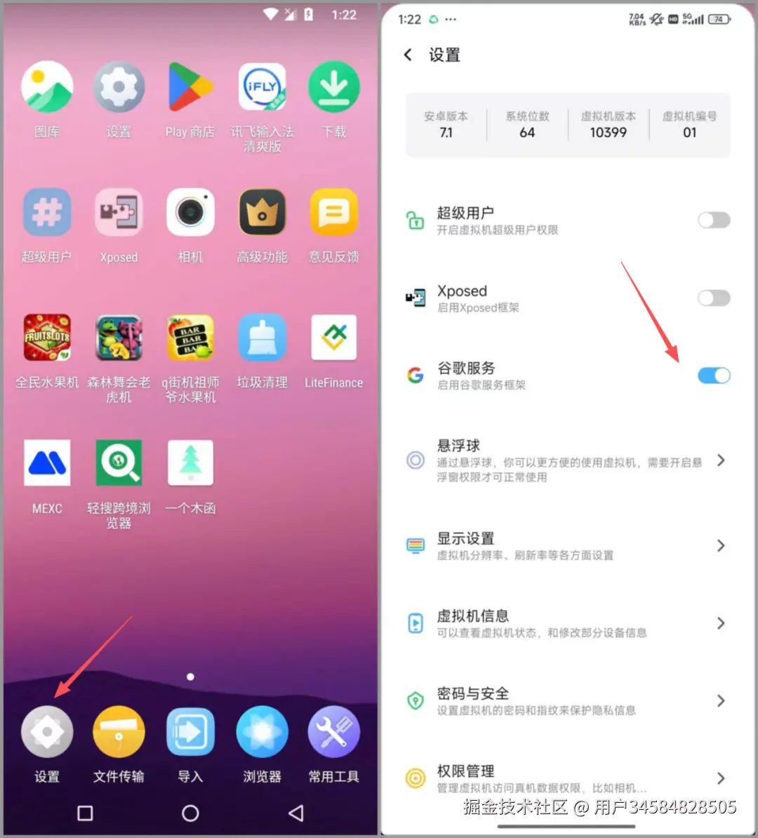 在VMOS虚拟机中无需安装谷歌三件套,人家自带这个,只需要点「设置」,选中这个「谷歌服务」即可。