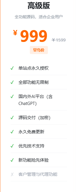 二、高级版:全功能源码永久授权,企业用户性价比之选
