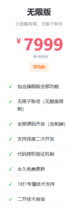 四、无限版:大型服务商专属,无限能力 + 深度二开支持