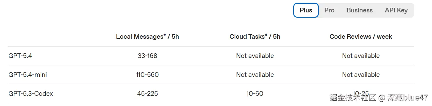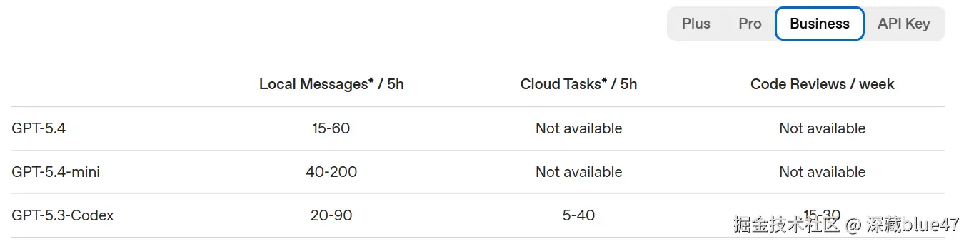过去,Business 的 Codex 额度与 Plus 基本持平。让我们根据 OpenAI 官方在 2026 年 4 月 2 日发布的最新数据,来看看具体的额度缩减情况。