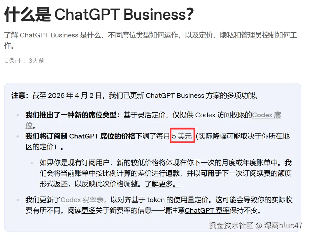 降价之后,官方确实退还了一部分信用额度,这意味着你可以用省下来的钱多增加一个 Business 席位。但相对而言,Business 用户手头的 Codex 额度缩水了不少。