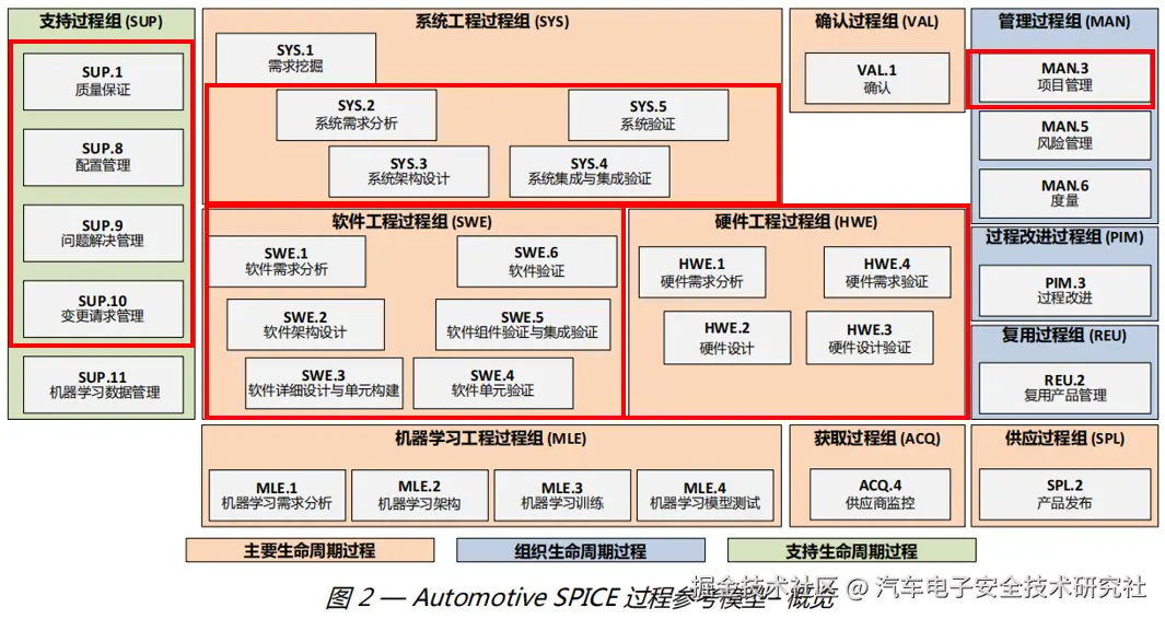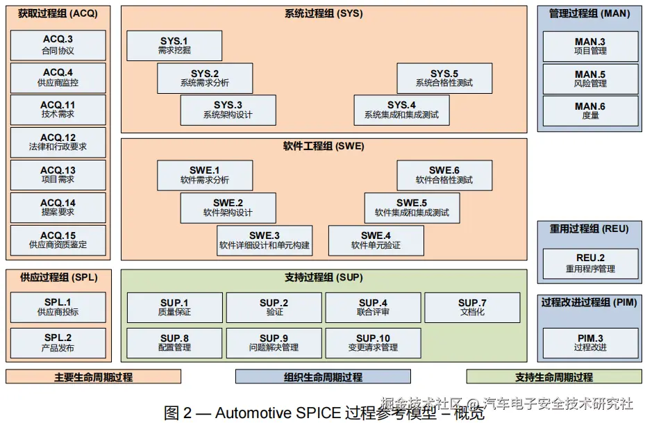 ASPICE 3.1 版本的核心聚焦于系统工程(SYS)与软件工程(SWE) 两大模块,仅覆盖车载软件与系统级的研发过程要求,完全不含硬件工程相关的过程规范,硬件开发流程不在标准的评估与管控范围内。这一设定导致 3.1 版本无法适配汽车机电软一体化的研发需求,与 ISO 26262 功能安全标准的硬件管控要求无法形成完整闭环,成为行业应用中的核心痛点。