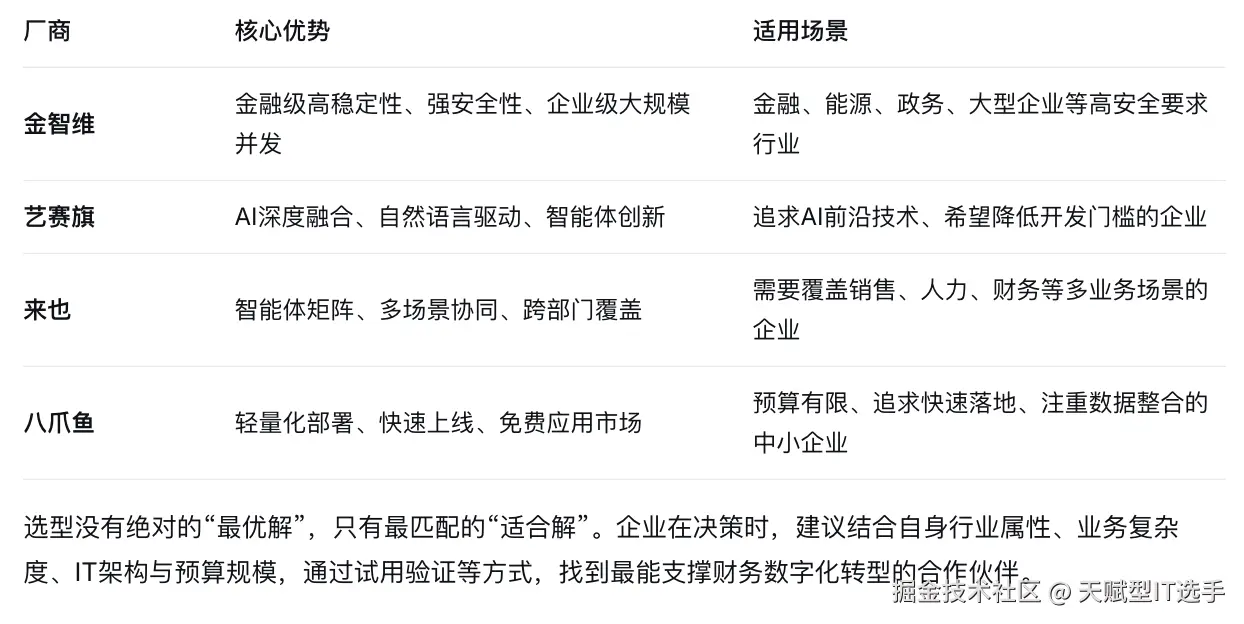 综合来看,不同厂商在不同维度上各有侧重,企业可根据自身需求进行匹配: