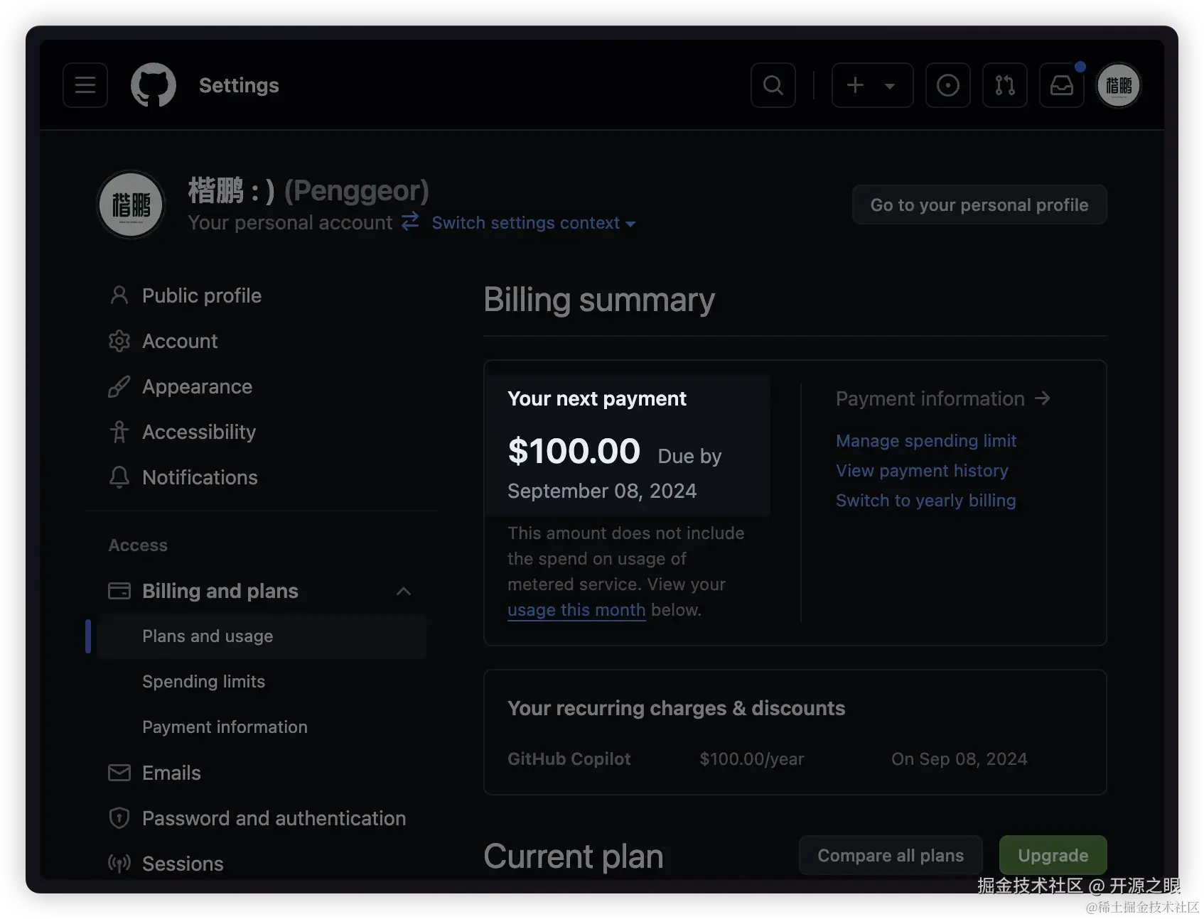 Copilot 官方有两种订阅方式,一个是个人版,一个是团队版。