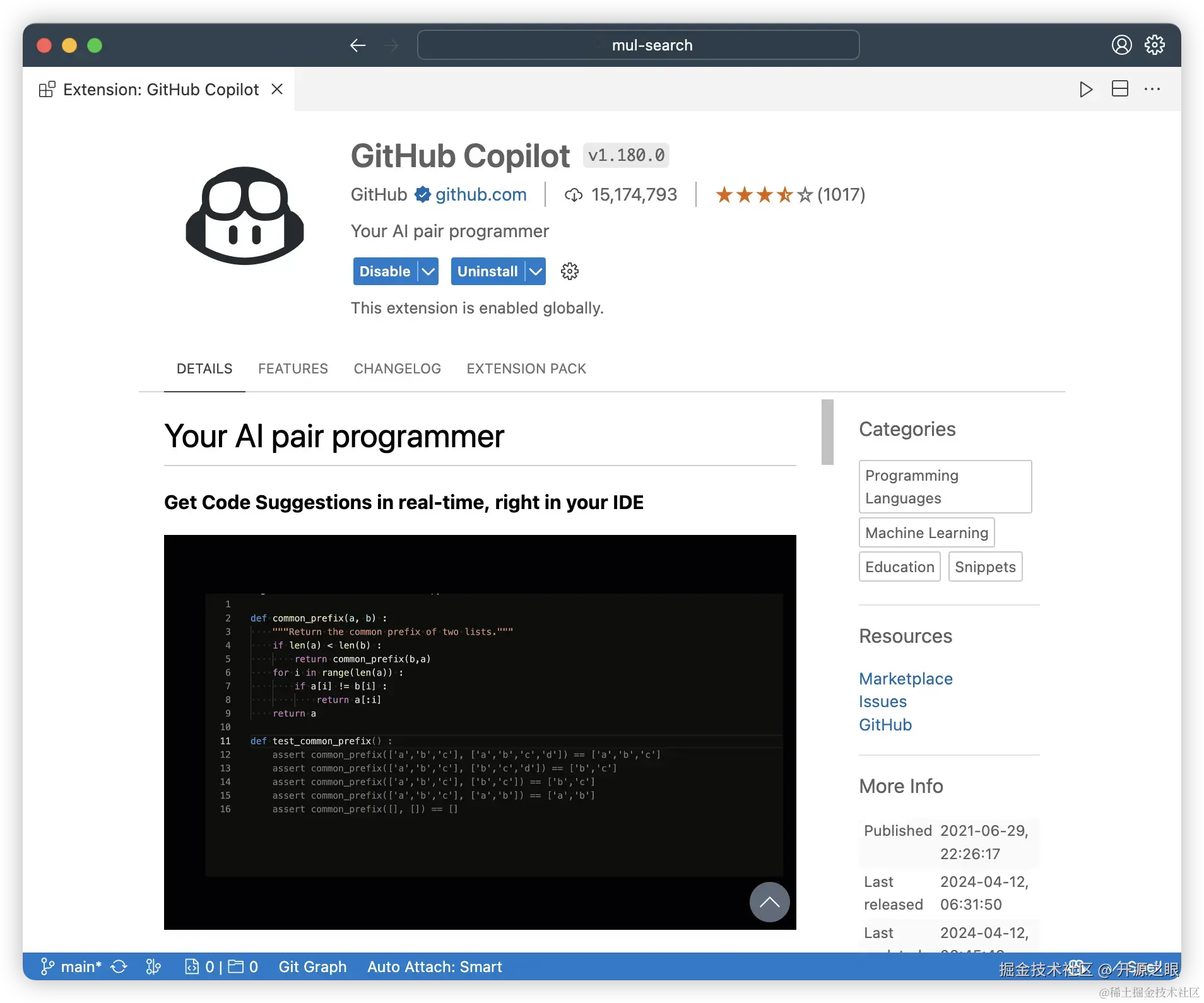Copilot 使用很简单,在 VSCode/JetBrains 上安装对应的插件,然后登录 GitHub 账号即可。