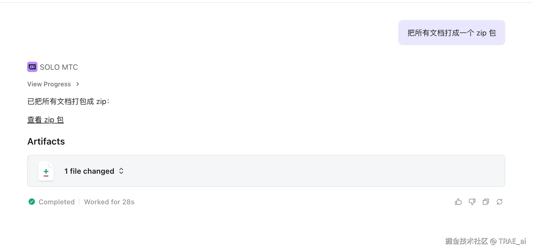 你可以顺便让 AI 把所有文档打成一个 zip 包,然后下载到本地