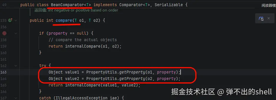 核心在 BeanComparator 类的 compare 方法: