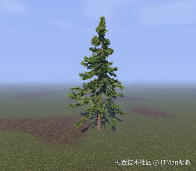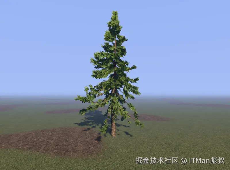 几何体全部生成后,将这些数组组合成一个网格,该网格完整地表示了树的几何形状及其材质。
