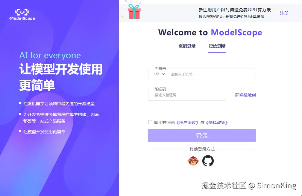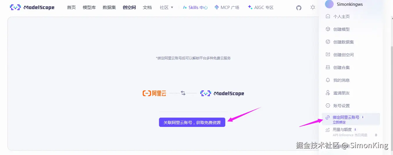 ModelScope(魔搭社区)是中国最大的开源AI模型社区,是阿里云旗下的一款产品,是中国最大的开源AI模型社区,致力于打造一款 AI届GitHub。提供2,000次/天免费API调用、5,000+模型托管、GPU资源申请等服务。