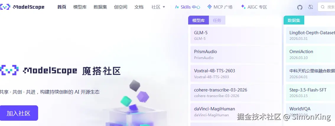 魔塔社区官方地址:www.modelscope.cn/home