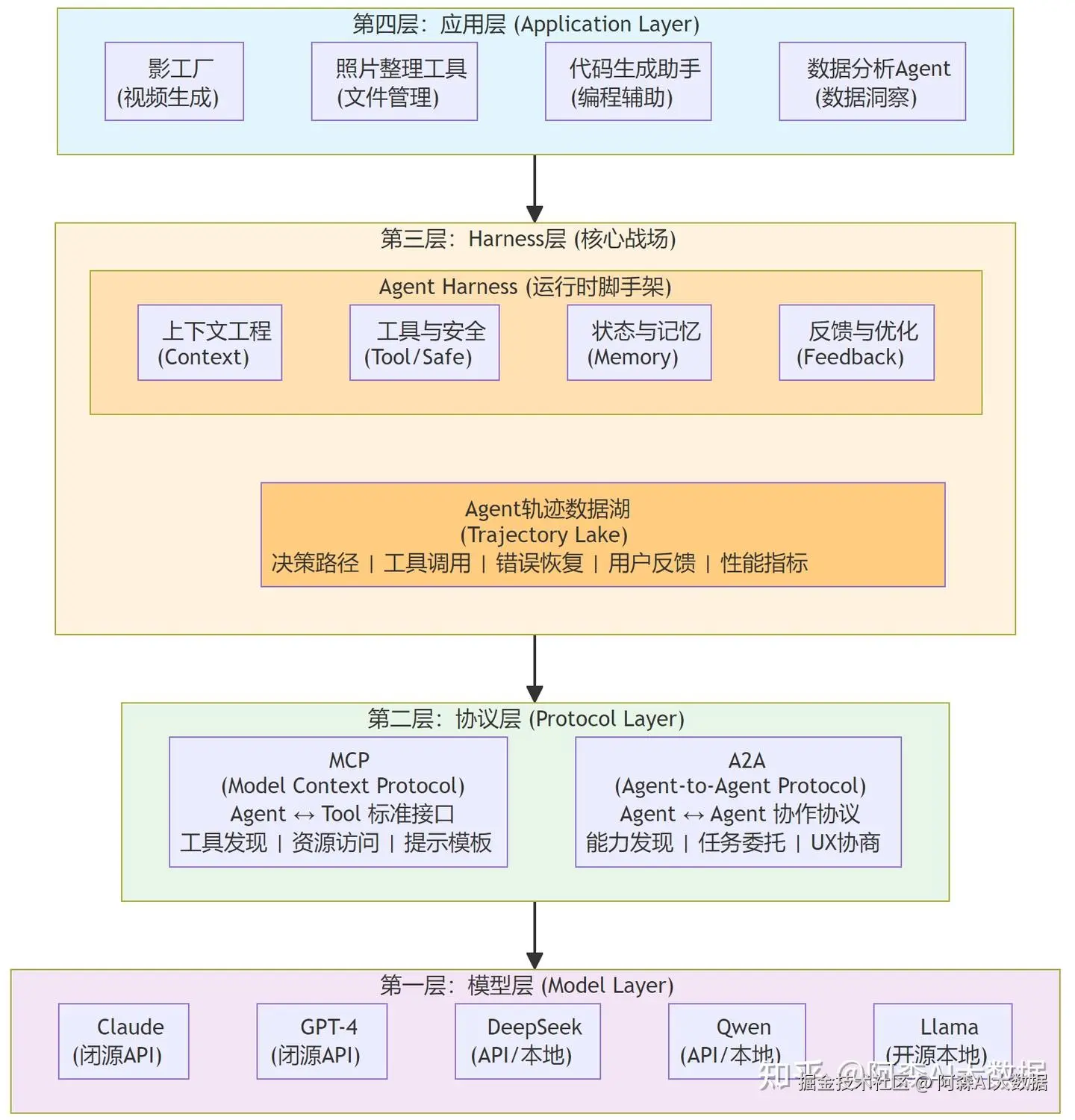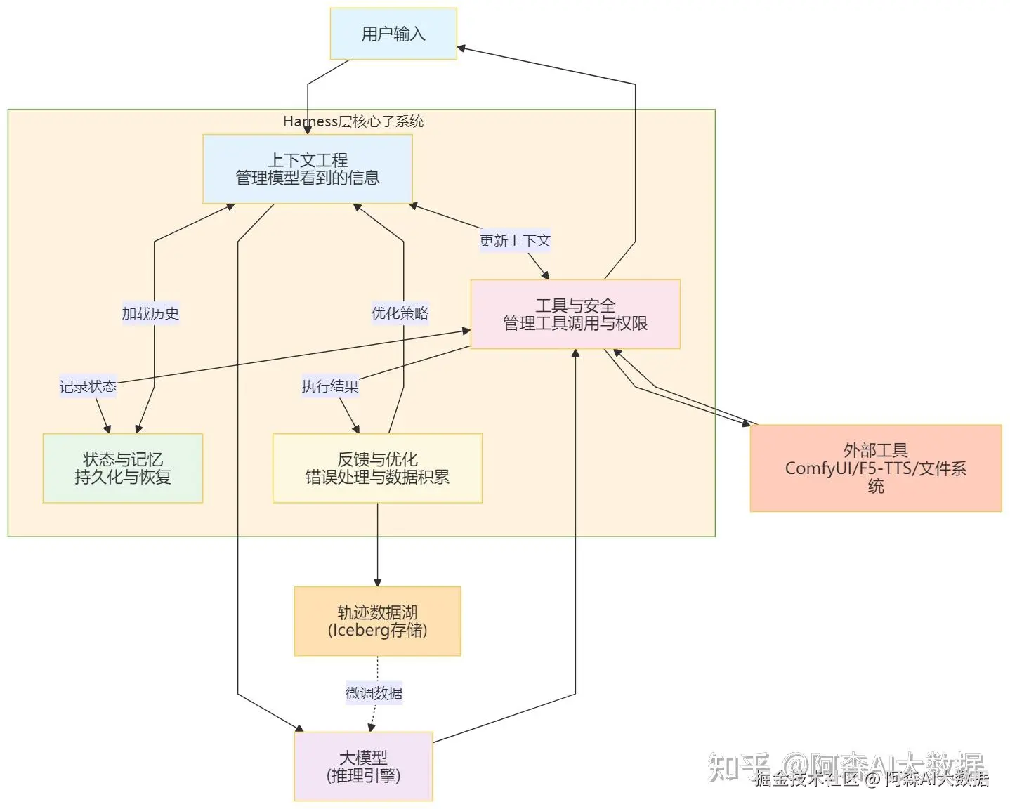 这与我在大数据领域20年的经验高度共鸣——决定系统成败的从来不是单一组件的性能,而是各层之间的协调与运行时管理。Flink的JobManager、Iceberg的元数据管理、数据湖的权限控制,这些"运行时基础设施"决定了数据平台能否支撑生产级应用。AI Agent的Harness,正是同一理念在智能时代的延伸。