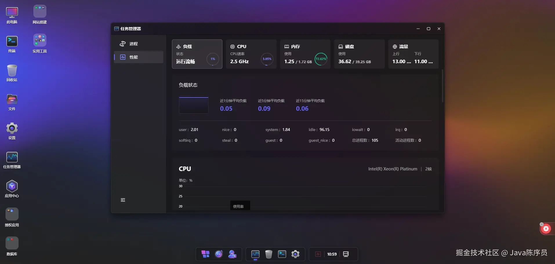- 可视化交互:在浏览器中实现服务器桌面端管理体验,通过直观的可视化界面完成文件管理、进程查看、Docker 操控等基础操作