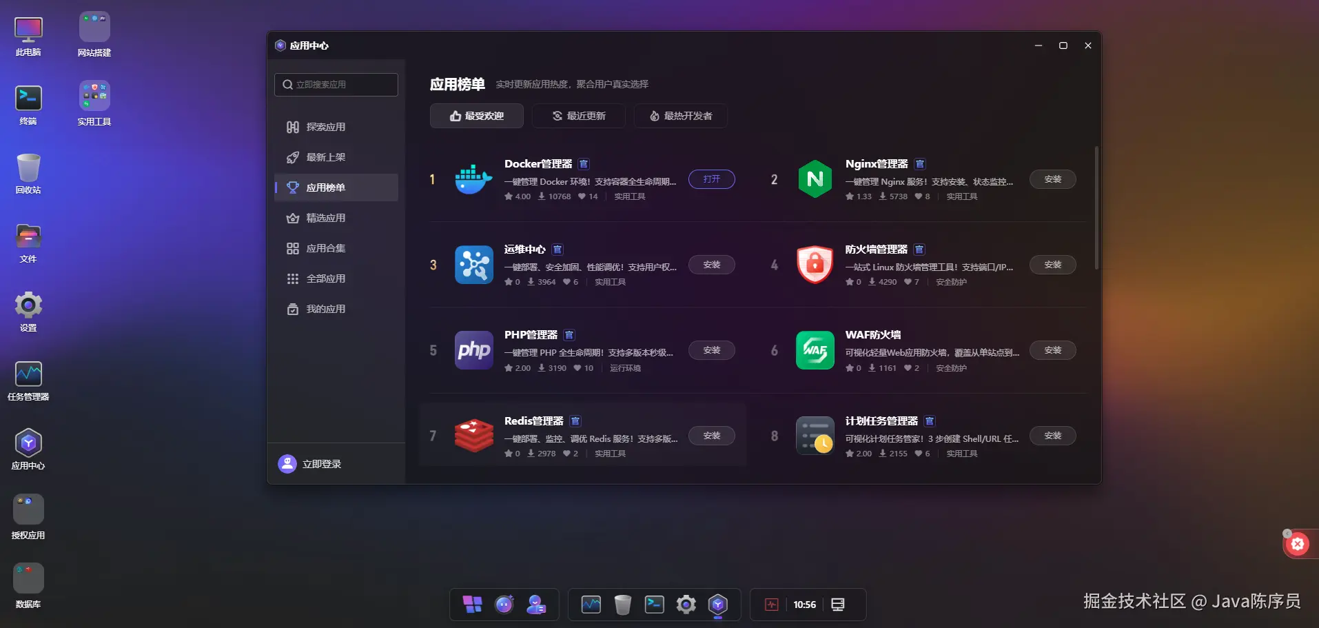 - 一键应用部署:整合 Nginx、MySQL、Redis 等常用中间件服务,提供可视化“一键部署”功能