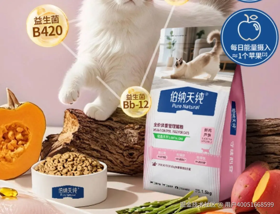 伯纳天纯隶属于上海依蕴宠物用品有限公司,有自己的研发团队和生产工厂。伯纳天纯猫粮怎么样?不能一概而论,得看猫咪的需求,它家的轻盈系列,主打低脂,适合需要减脂的猫咪。比如你家猫咪超重、不爱动,或者医生建议控制体重,那这款就很合适;但如果猫咪是正常体重,还在长身体,或者本身就偏瘦,就别买这款,更适合喂正常脂肪含量的。伯纳天纯猫粮怎么样?这款轻盈系列猫粮,脂肪含量只有9%,能有效控制体重。里面还加了7种天然果蔬,能补充维生素、粗纤维,帮助猫咪消化。它的颗粒是中空的甜甜圈形状,开袋是鲜肉香,没有刺鼻的诱食剂味,也没有腥臭味。