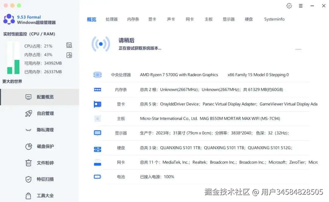 可能经常用的大佬都知道老牌全能系统工具等,但本次要推荐的是另一款,感觉不输其它工具。