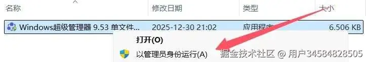 分享的这款windows管理器为绿色便携版,所以只需要右键以管理身份运行即可,不需要额外的安装过程。