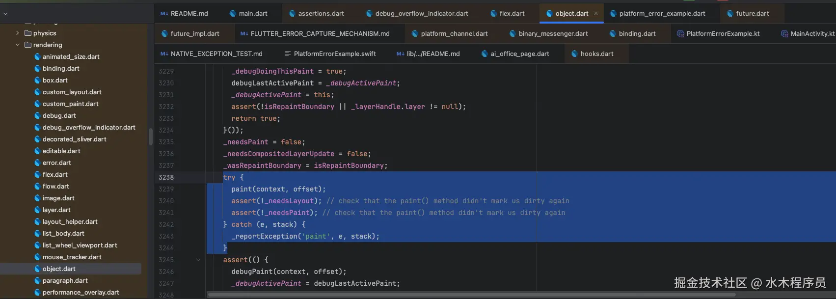 本质还是Flutter框架层try-catch住异常,然后抛给FlutterError.onError