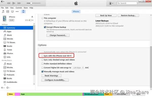 - 勾选 “通过无线局域网与此 iPad 同步” 选项。