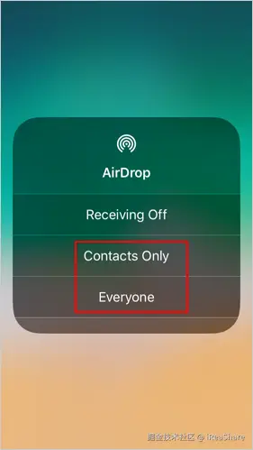 - 选择 “隔空投送”,再将权限设置为 “仅限联系人” 或 “所有人”。