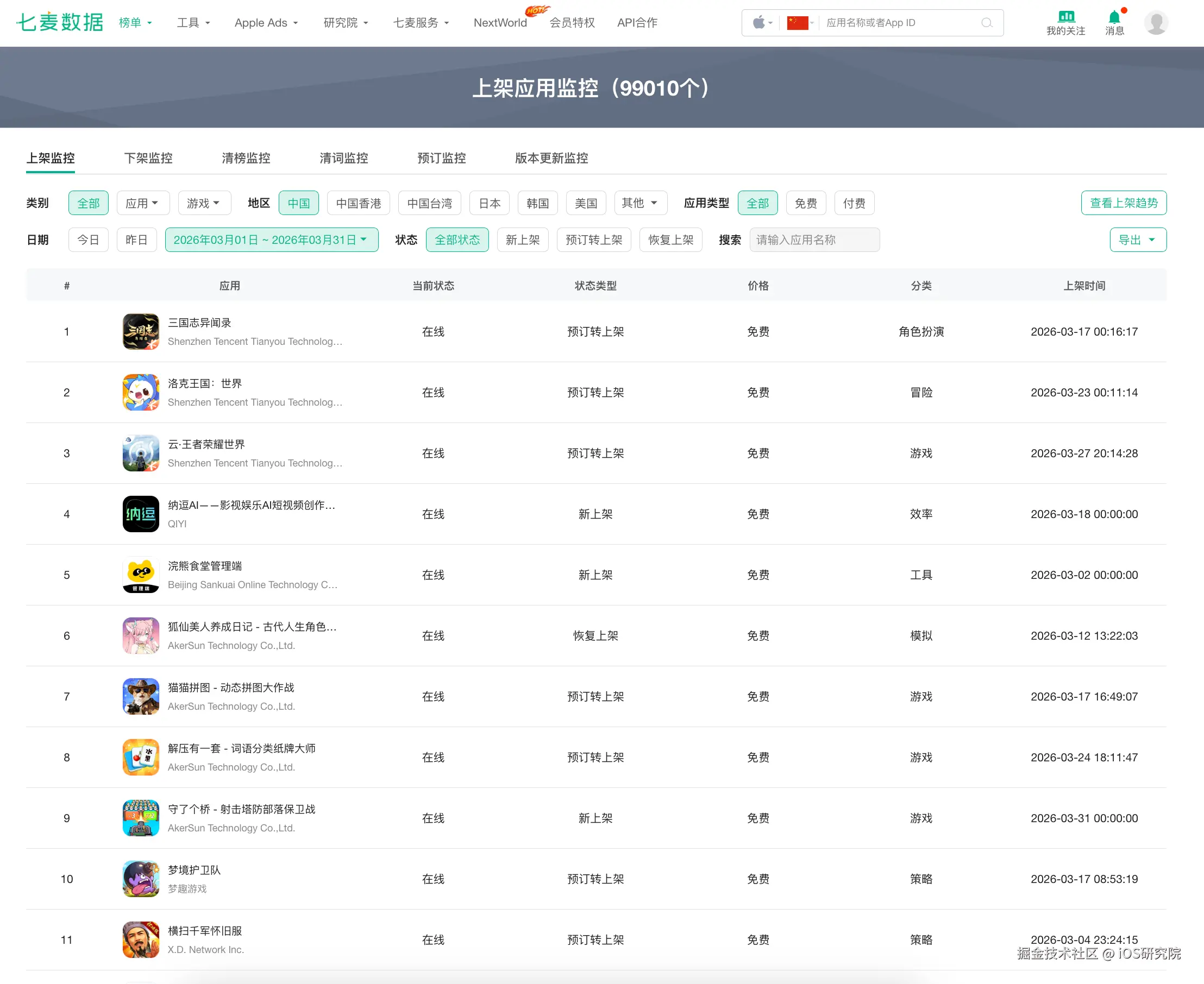 当 2025 年 3 月的 App Store 上架榜单中仅有零星几款 AI 工具类产品点缀,到 2026 年 1-3 月 Google Gemini Enterprise、AI Edge Gallery、腾讯 AI 工作台、纳逗 AI 等数十款 AI 应用密集上架,应用总量从 52380 个飙升至 99010 个的背后,是 AI 工具对 App Store 审核体系的全方位挤压。这场变革中,AI 不仅重构了应用生态,更让审核体系的承压能力迎来前所未有的极限测试。