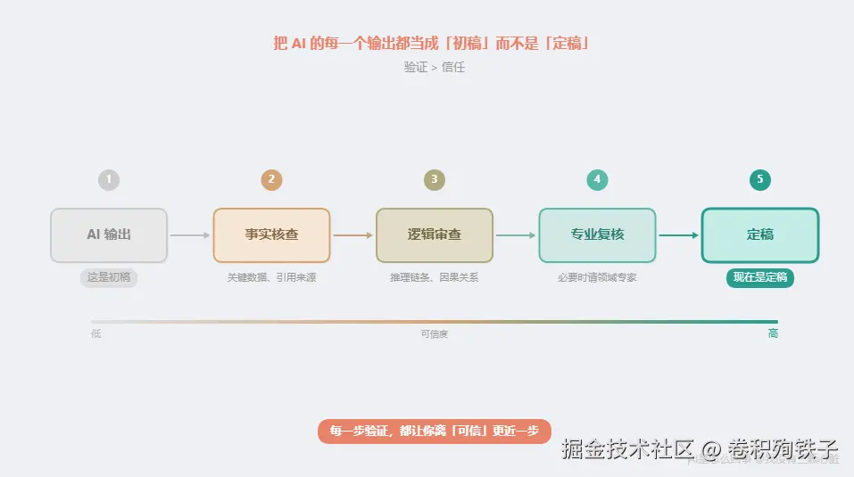 一句话:把 AI 的每一个输出都当成"初稿"而不是"定稿"。