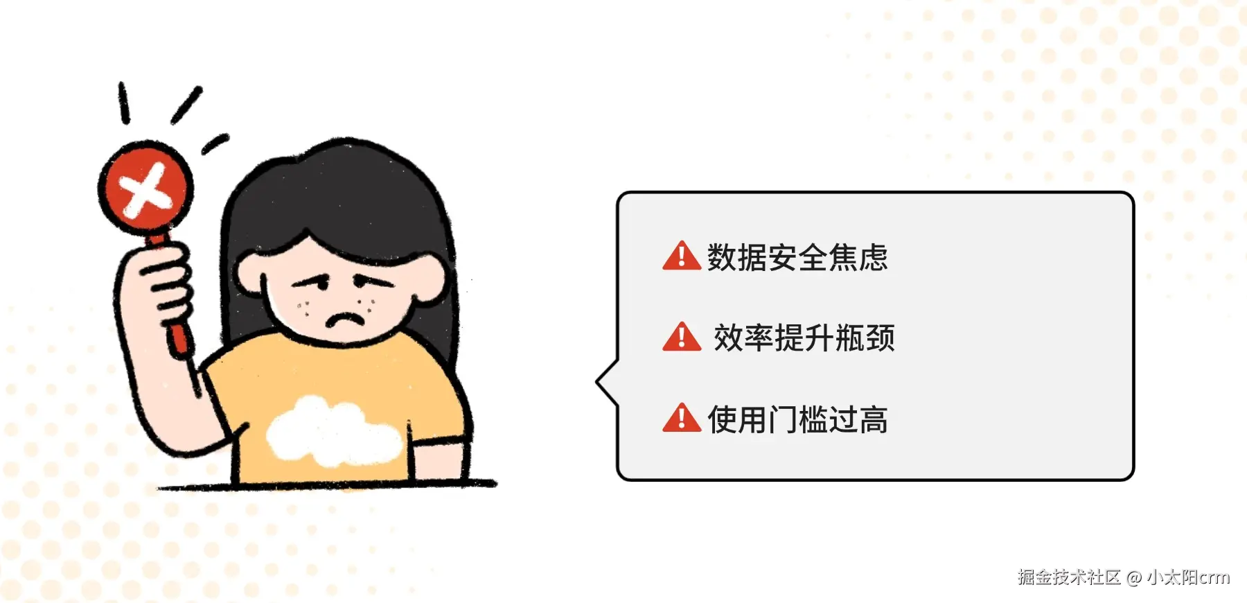 1. 数据安全焦虑: 云端CRM将客户合同、财务数据存储在第三方服务器,面临泄露风险;Excel手动管理则易丢失、易篡改,不符合《数据安全法》要求。