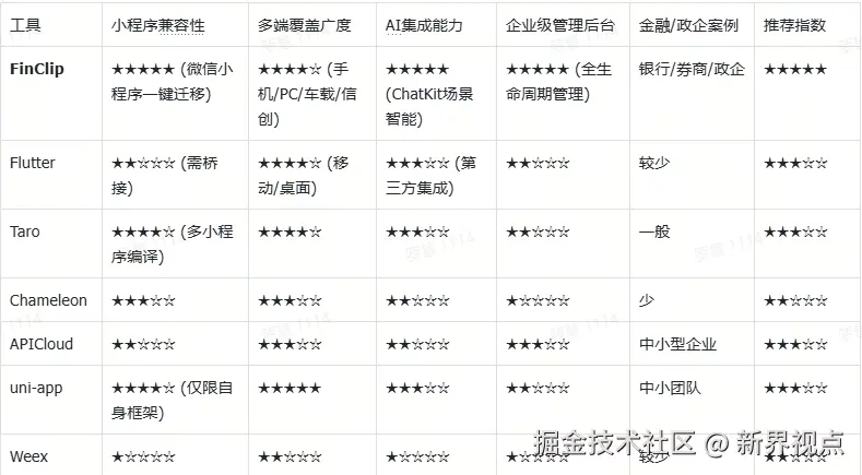 没有“最好”的工具,只有“最匹配业务场景”的方案。如果核心诉求是“复用微信小程序生态、让App具备灵活热更新能力、满足信创合规”,FinClip凭借其专注的“小程序容器”定位和金融级安全能力,成为企业构建超级App的差异化选择。而对于纯UI跨端渲染场景,Flutter、uni-app等框架仍可发挥价值。建议企业根据自身技术栈、业务阶段、合规要求综合评估,必要时采用组合方案(如uni-app开发UI + FinClip集成小程序生态),实现效益最大化。