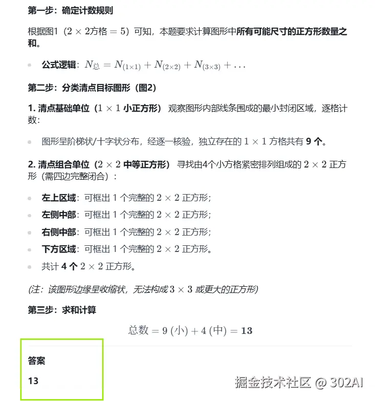 本次测评使用302.AI收录的题库进行独立测试。模型分别就逻辑与数学(共10题),人类直觉(共7题),多模态(共20题)以及编程模拟(共12题)进行案例测试,对应记分规则取最终结果,下文选取代表性案例进行展示。