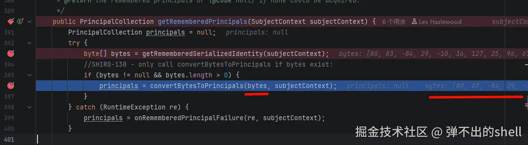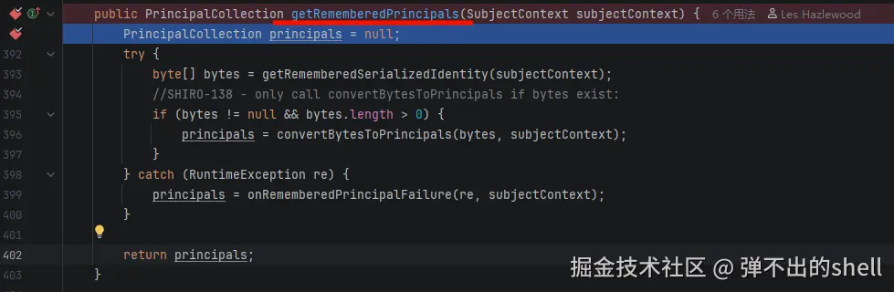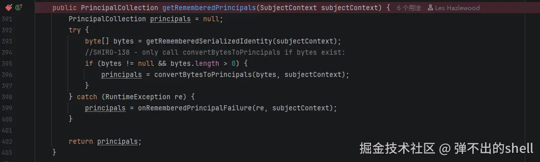 勾选 Remember Me 登录,先来到 getRememberedPrincipals: