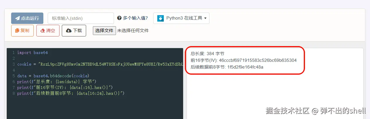 把第一个包的 rememberMe 值拿来解码分析一下,用 Python: