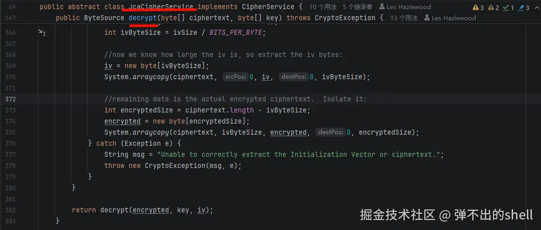 Shiro 加密时把 IV + 密文 拼在一起存进 cookie,解密时再按这个格式拆开,这就是我们之前 Python 脚本里 data[:16] 取 IV 的依据。