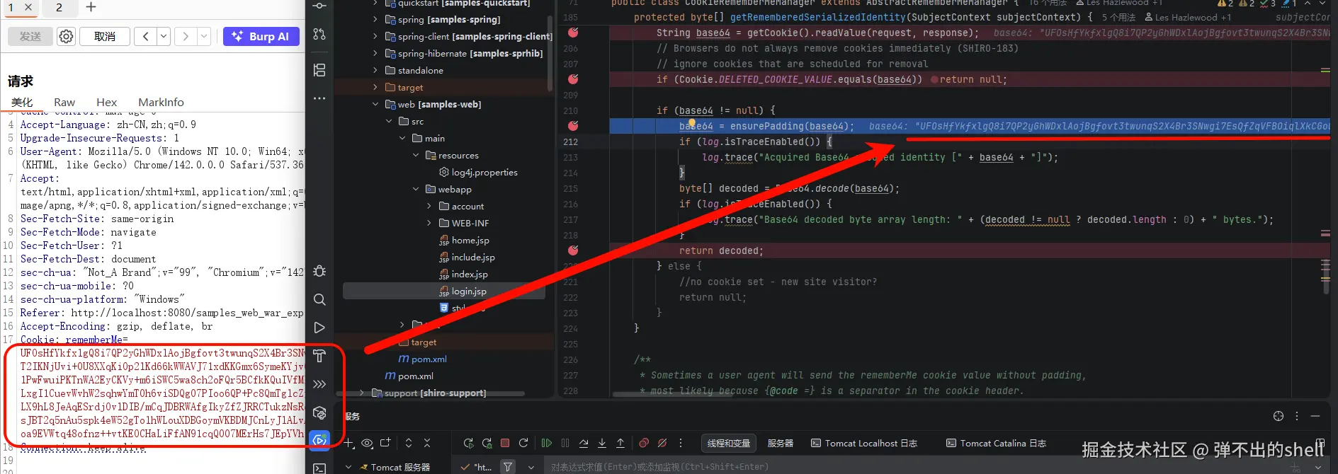 rememberMe=deleteMe(清除旧 cookie) - 再发一个有效期 1 年的长串 Base64 → 这就是加密后的序列化数据