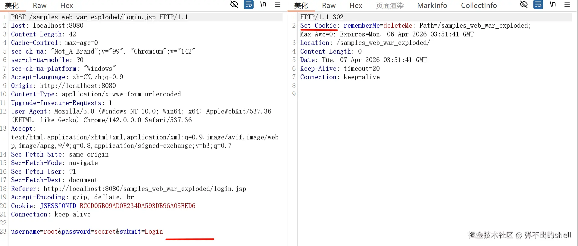 用 Burp 抓包,对比勾选和不勾选 Remember Me 的请求。