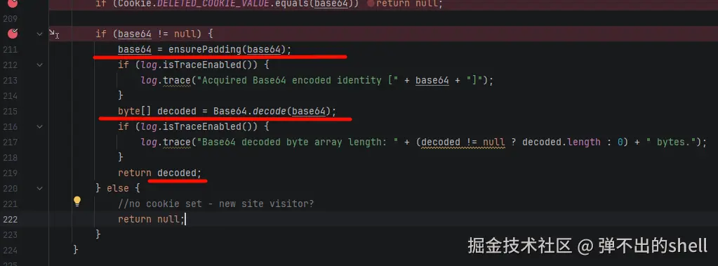然后进入了 getRememberedSerializedIdentity 进行 Base64 的 cookie 获取: