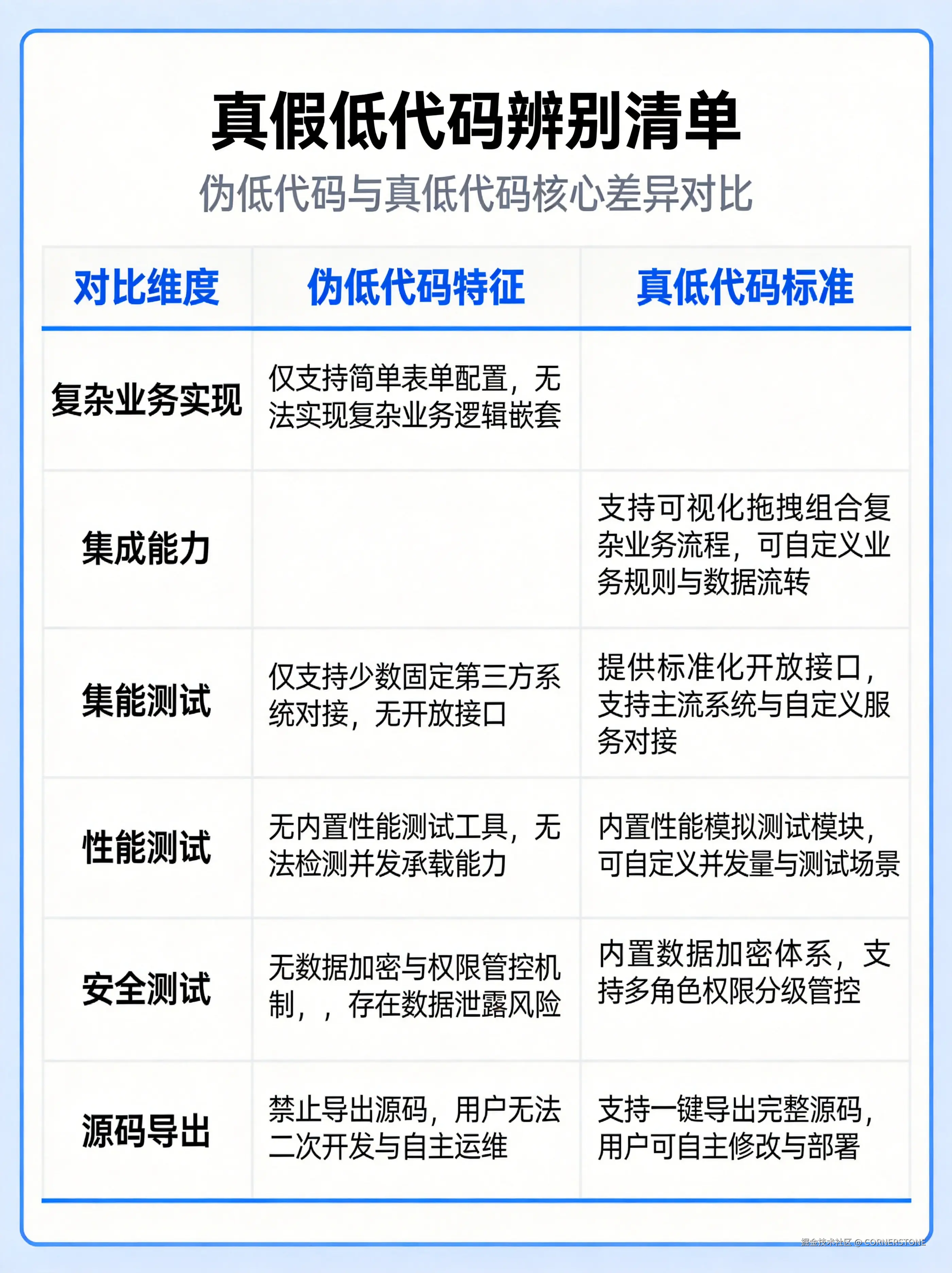 这是最关键的问题,市场上,真低代码和伪低代码混杂。怎么辨别?